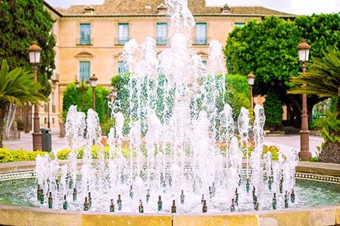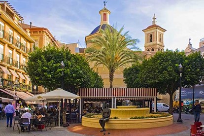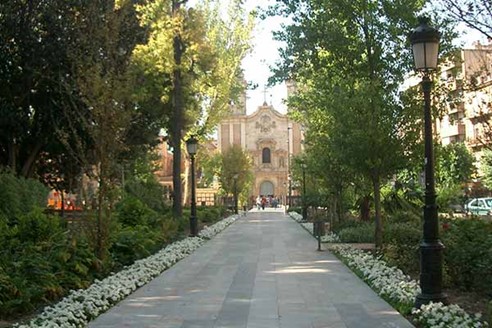 En esta plaza ajardinada se encuentra el Ayuntamiento de Murcia. Presidido por una fuente central circular y dos laterales alargadas, que recuerdan a las de los jardines del Generalife de Granada.
