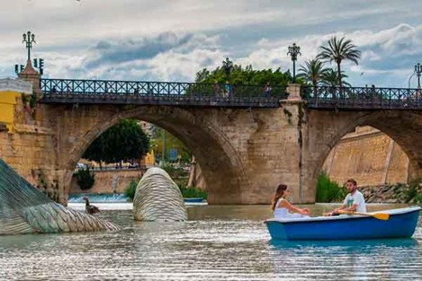 El margen izquierdo: cruzar el río mientras se disfrutan de maravillosas vistas de la ciudad. Por el Puente de Los Peligros discurre la vida cotidiana de los vecinos de la ciudad, además es el lugar donde se dan cita algunos de los eventos más importantes, como es el caso de la Procesión de “Los Coloraos” cada Miércoles Santo. Desde él podrás ver, por el margen izquierdo del puente, el «Monumento al Entierro de la Sardina» que asoma en el río junto al puente, y los «Molinos del Río», antiguos molinos harineros del siglo XIX y que en la actualidad están habilitados como museo y sala de exposiciones. Desde esa barandilla privilegiada también se puede observar una postal icónica, con el conjunto del río Segura, la Glorieta y la torre de la Catedral de Murcia.